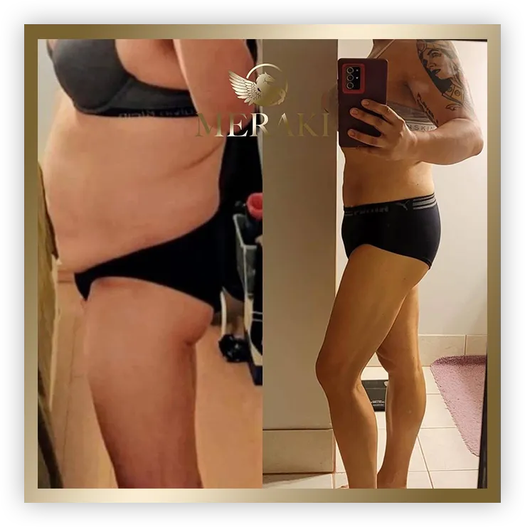 "I used to only wear black because I hated how I looked after having kids. Now I feel strong, confident, and proud to wear a bikini again. Meraki didn't just help me lose weight — it helped me feel understood."